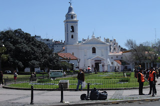 We spent the weekend exploring the city on foot. We had a room in the lively Recoleta district with some pretty amazing restaurants and cafes nearby and actually very few tourists. On Sunday morning we went on a guided walk with a very entertaining guide who took us to lots of historical nooks and crannies of the city. We visited the cemetery (more of a small town than a cemetery!) where Eva Peron is buried, visited San Telmo for the weekly antiques market, and then caught a train out to the suburbs to Martinez to visit my grandfather´s cousin, Elaine.